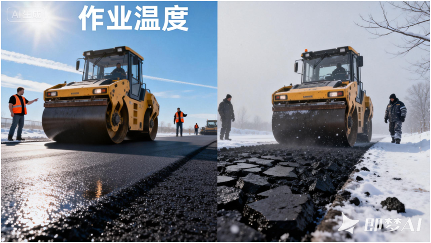 但鋪瀝青的黃金季節(jié)是夏天,夏天氣溫高,瀝青好鋪開,冬天溫度低、地面涼,瀝青往地上倒,容易凝固,不好鋪開。這就是瀝青對作業(yè)溫度的要求,施工的時候,溫度必須達到要求才能做好。
