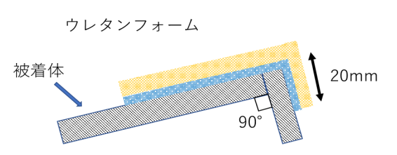 方法:膠帶一面貼合在5mm厚度的聚氨酯泡棉上,用2kg重的橡膠膠滾反復(fù)壓接2次放置24小時(shí)后,另一面貼合在90°形狀的被粘材料(SUS304/PP)上,用2kg重的橡膠膠滾反復(fù)壓接2次,放置20min后在如下環(huán)境條件中測試。